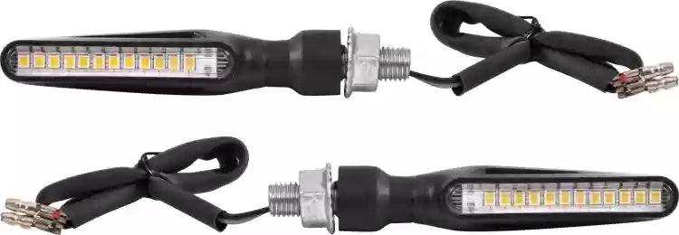 Motorcycle flowing 12-LED turn signal indicator lights.