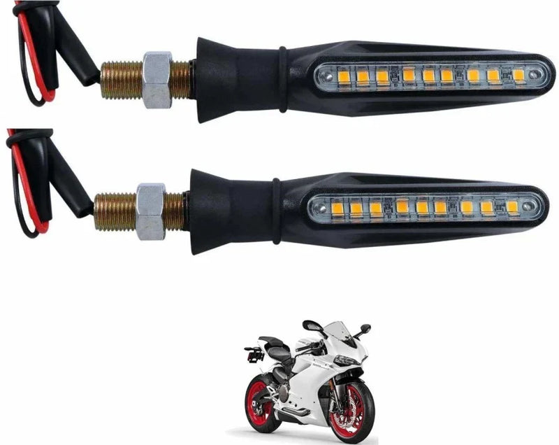 Bike Indicator With LED Flowing Turn Signal Lights Plain Running Audi Style - 2 Pcs